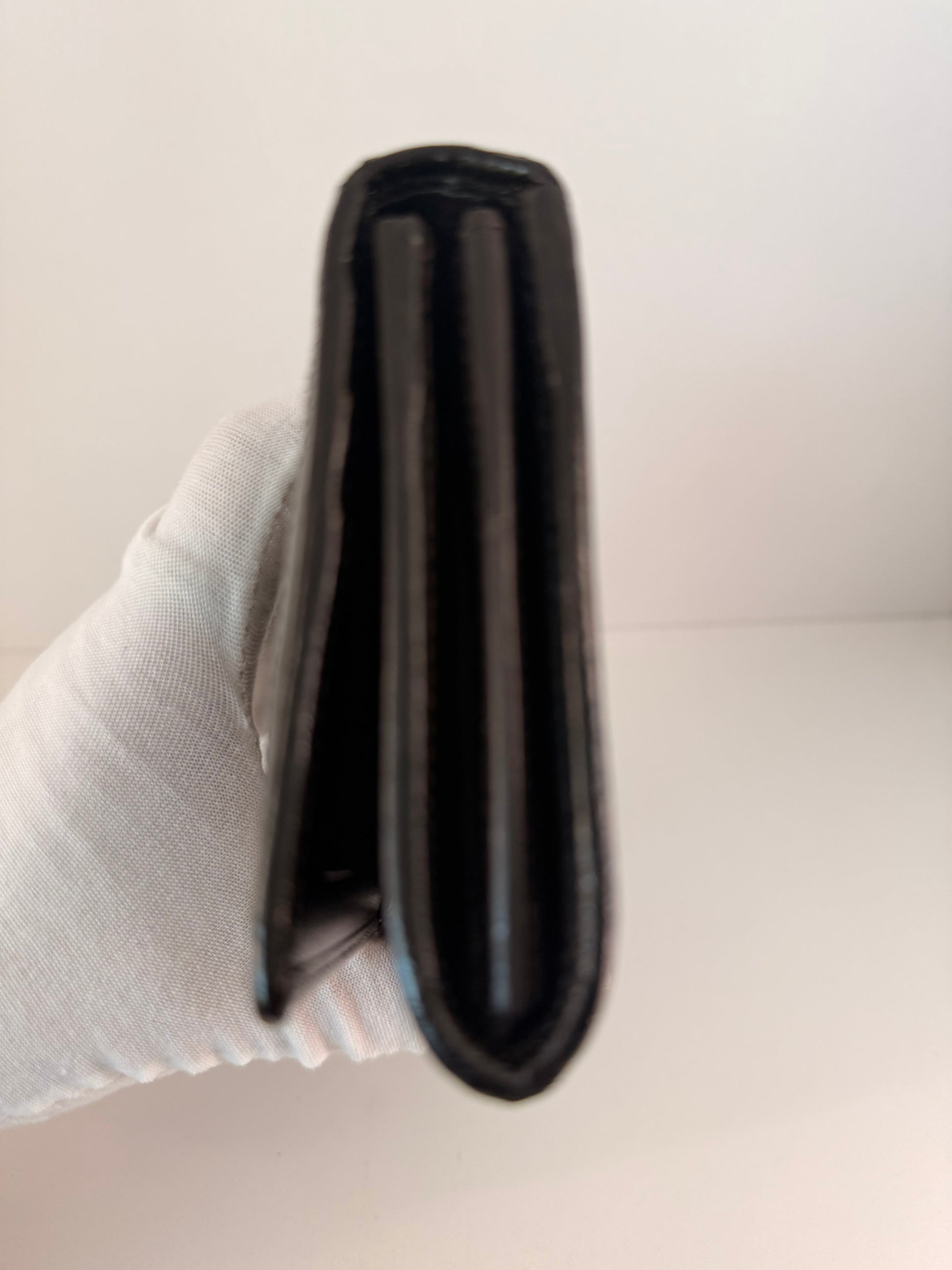 This gorgeous Fendi bi-fold wallet has six designated card slots, five additional compartments for bills, receipts, etc., and a zippered coin compartment that has been restored with pretty black embroidered flower patches so that this beauty can live another life with you!! The snap works great, the leather and material are in very good pre-loved condition.