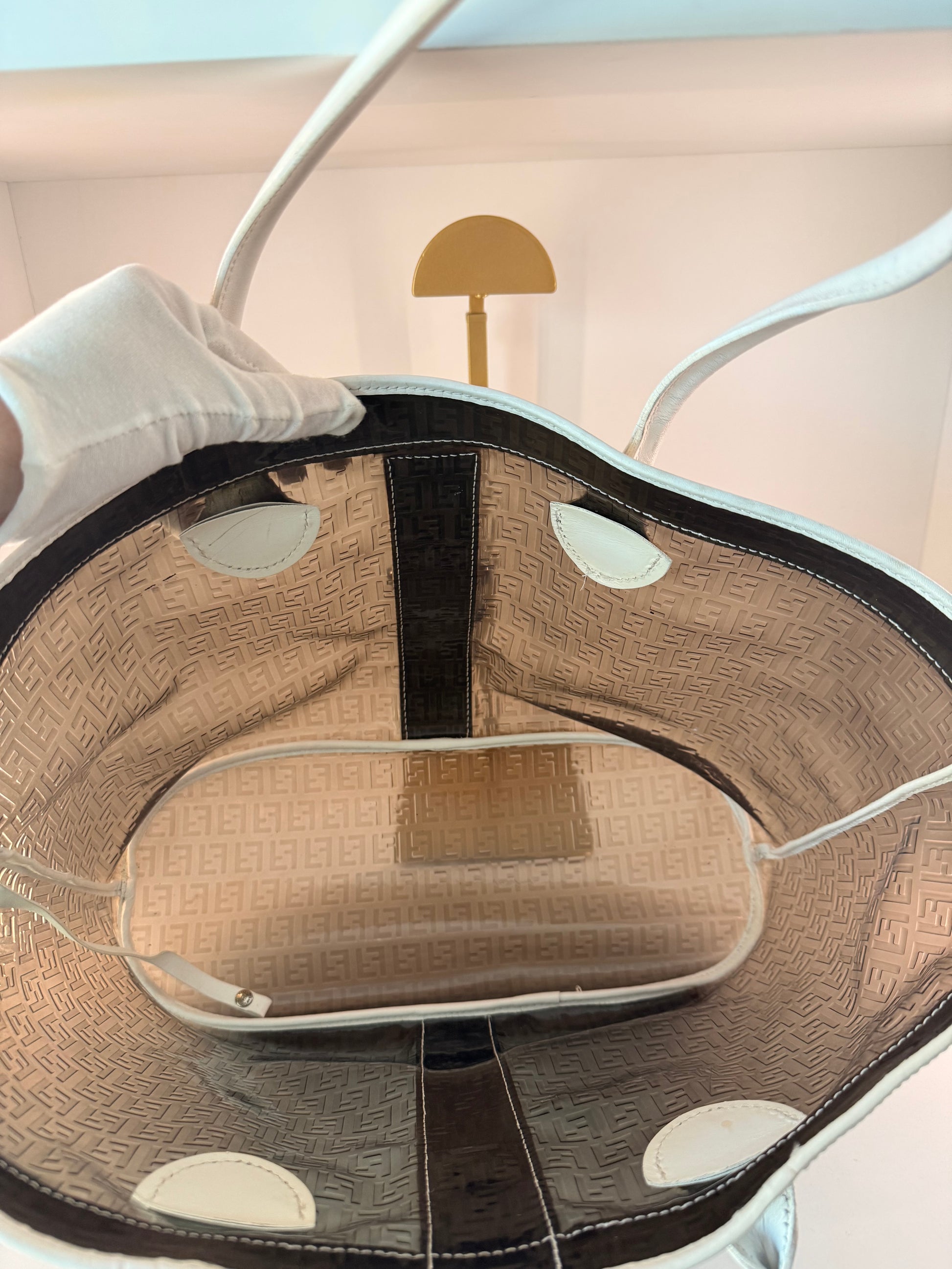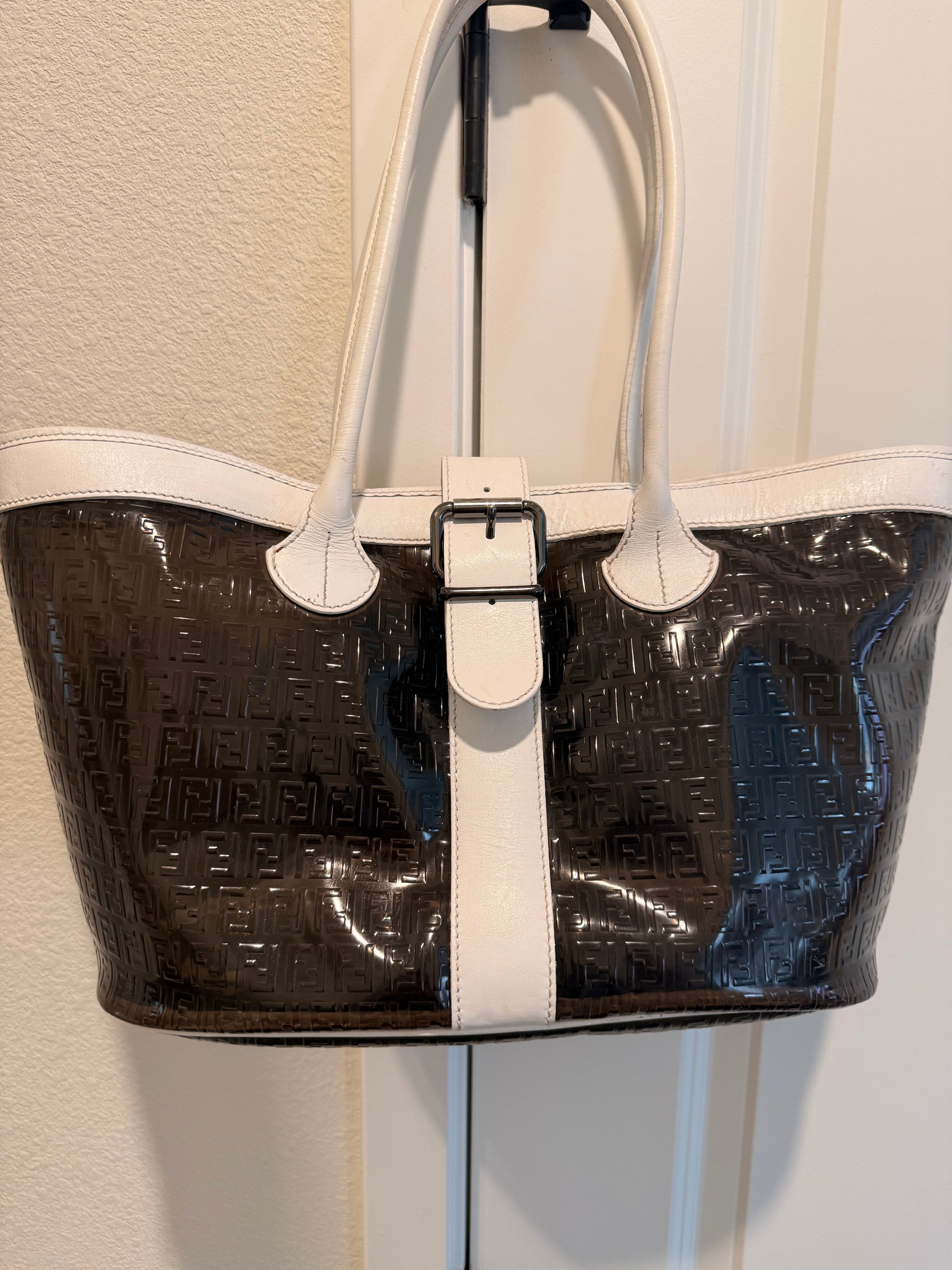 Rare Fendi Zucca White Leather w/ Silver Hardware and Brown PVC Transparent Shopper